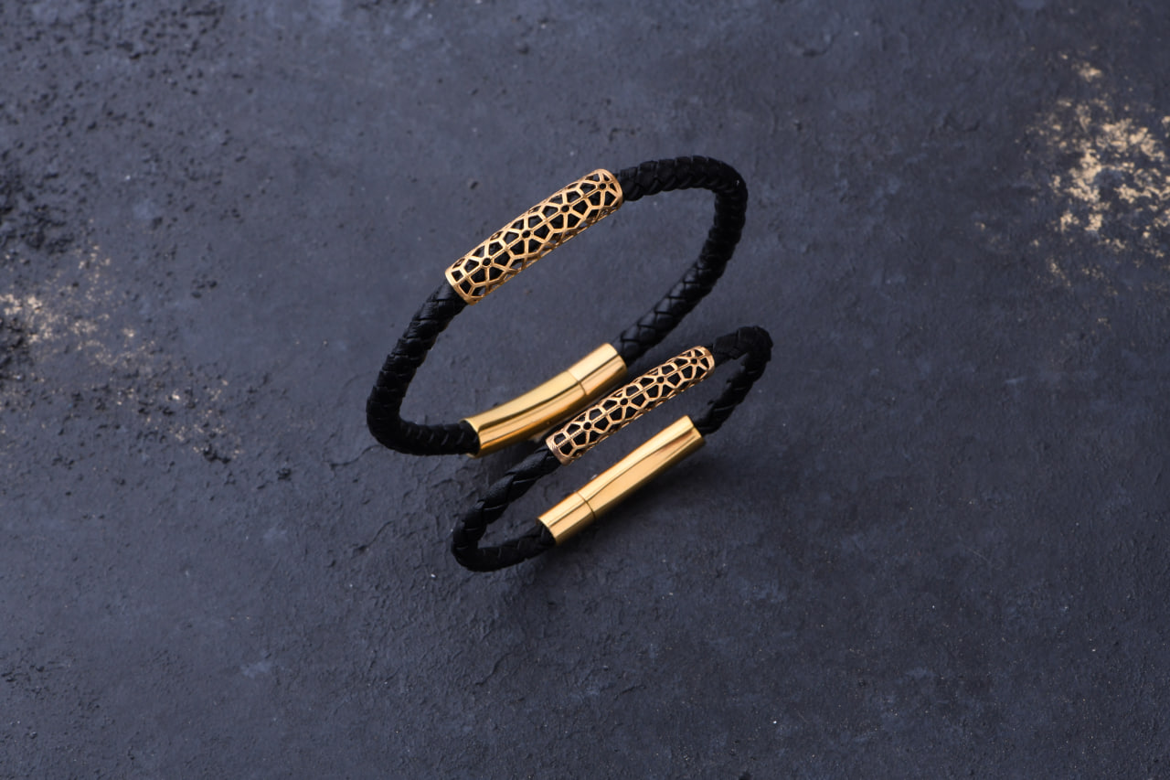 این دستبند ترکیبی از طلا و چرم با طراحی بی‌نظیر است که به استایل شما جلوه‌ای لوکس می‌بخشد