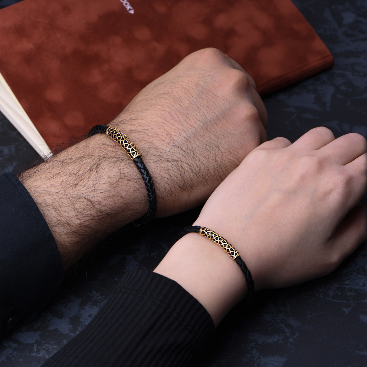 دستبند مردانه طلا چرم طرح فیوژن 2