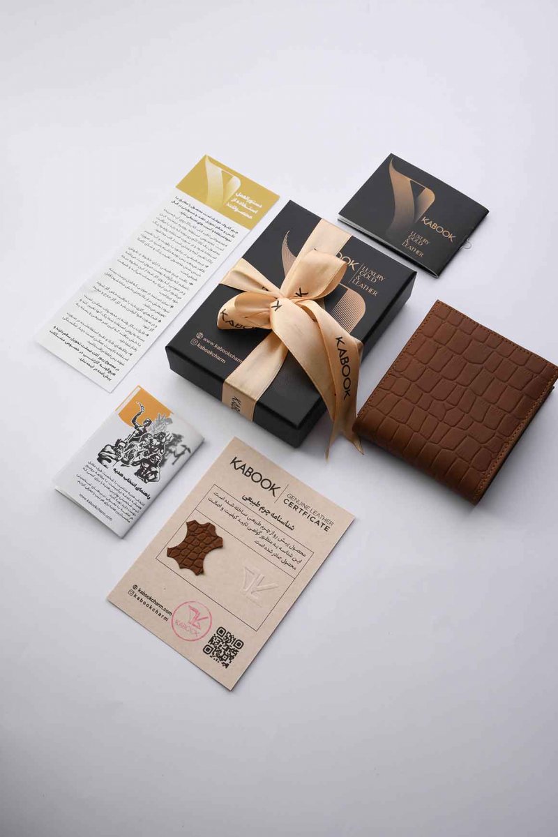 استفاده شده از چرم طبیعی گاو با طرح کروکدیلی براق و دارای شناسنامه اصالت چرم