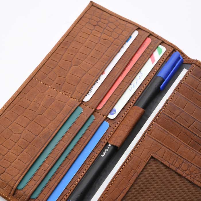 کیف کارت چرم طبیعی گاو با طرح کروکدیلی با دوام و دارای شناسنامه اصالت چرم