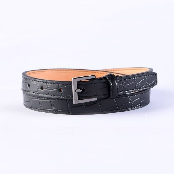کمربند زنانه چرم مشکی با طرح کروکودیلی، انتخابی شیک و جسورانه برای تکمیل استایلهای خاص و مدرن است. این کمربند با استفاده از چرم طبیعی با طرح کروکودیلی، ترکیبی از دوام و زیبایی را ارائه میدهد که به راحتی با انواع پوششها، از رسمی تا نیمهرسمی، قابل استفاده است.