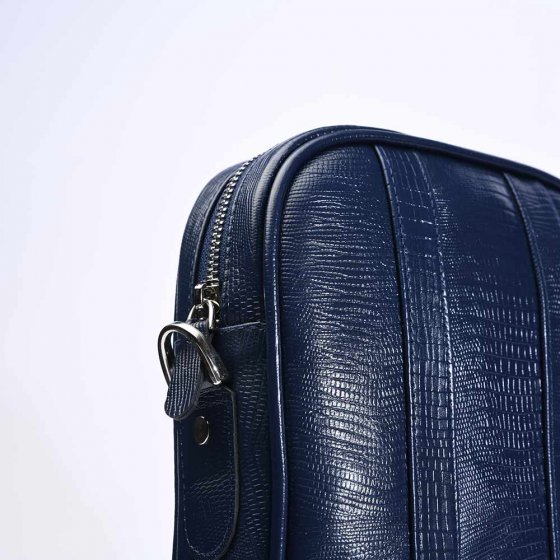 این کیف با چرم لیزارد بافتدار ساخته شده است که علاوه بر زیبایی و درخشش خاص، مقاومتی بالا و دوام طولانی مدت را به شما ارائه میدهد. رنگ سورمهای کیف به راحتی با انواع لباسهای رسمی و کژوال ست میشود و ظاهری متفاوت و جذاب به شما میبخشد.