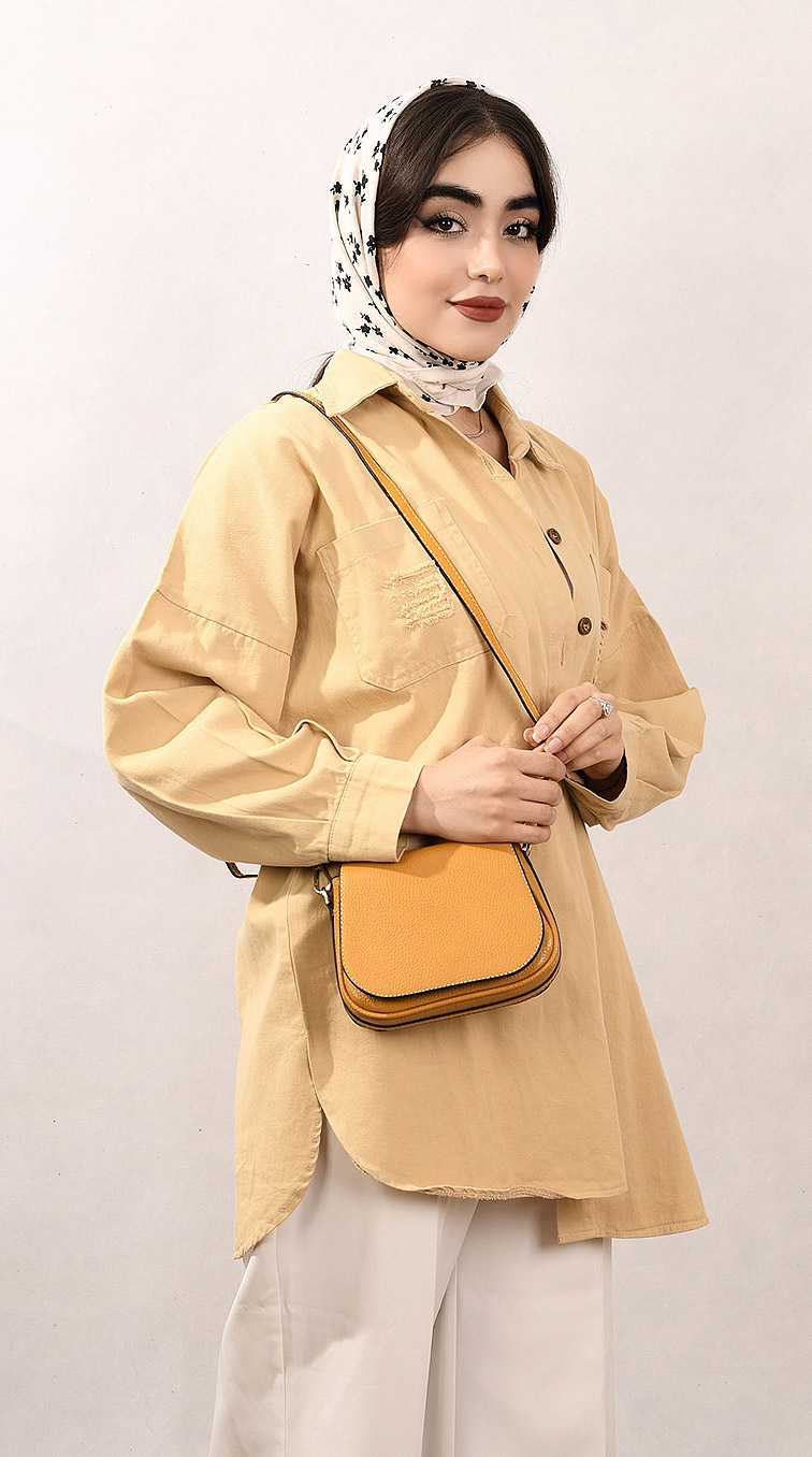 کیف دوشی زنانه طرح رستا متوسط چرم فلوتر زرد