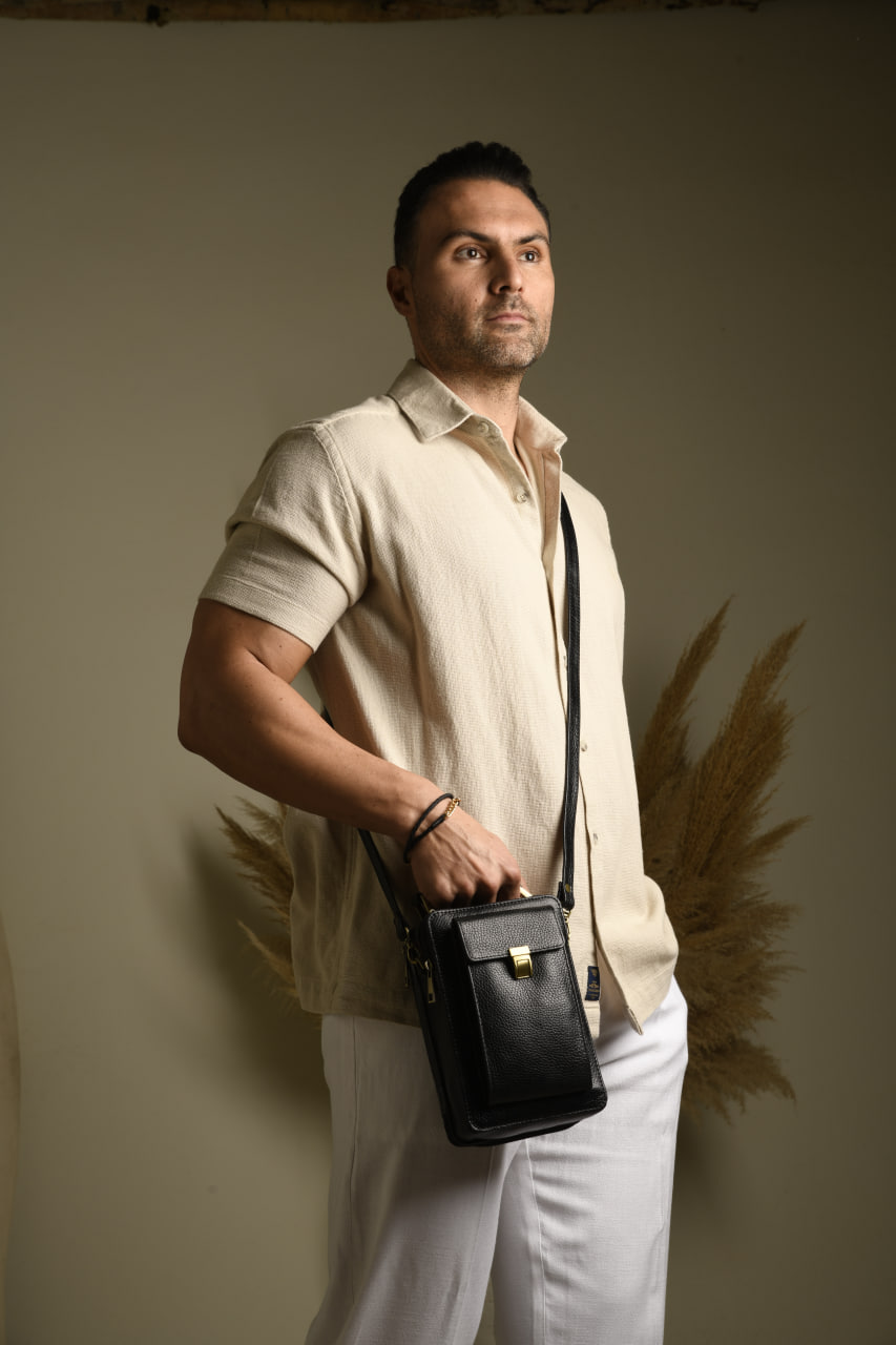 کیف کراس بادی مردانه آرکان، نمونه‌ای برجسته از طراحی مدرن و کارآمد است که به آقایان این امکان را می‌دهد تا در هر موقعیتی با اعتماد به نفس ظاهر شوند. این کیف با استفاده از چرم فلوتر مشکی با کیفیت بالا ساخته شده و علاوه بر زیبایی، دوام و استحکام بی‌نظیری را نیز ارائه می‌دهد.