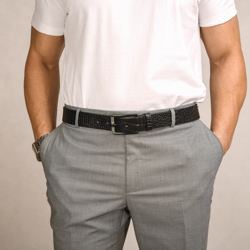 یک انتخاب لوکس و خاص برای آقایانی است که به دنبال ظاهری شیک و منحصر به فرد هستند. این کمربند از چرم طبیعی گاوی ساخته شده که با طرح کروکودیلی برجسته بر روی سطح آن، زیبایی و جذابیت بیشتری پیدا کرده است. رنگ مشکی براق این کمربند آن را مناسب برای استفاده در استایلهای رسمی و نیمهرسمی میکند و میتواند به راحتی با انواع لباسها از جمله کت و شلوار یا لباسهای اسپرت ست شود.